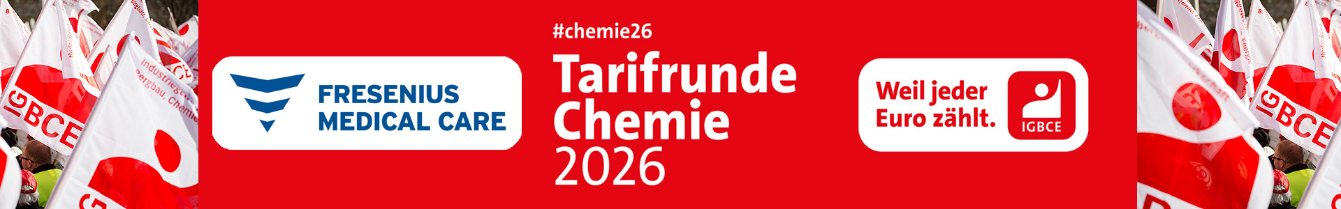 Ob in Produktion, Verwaltung, Forschung oder als Pflegekraft bei NephroCare – jede und jeder leistet einen wichtigen Beitrag für den Unternehmenserfolg. Aber: Zu oft wird Leistung nicht angemessen gewürdigt, und langjährige Erfahrungen zahlen sich beim Gehalt nicht aus. Tarifliche Schutzrechte, transparente und regelmäßige Entgeltsteigerungen, Sonderleistungen und gleiche Anerkennung müssen endlich allen zugänglich sein.