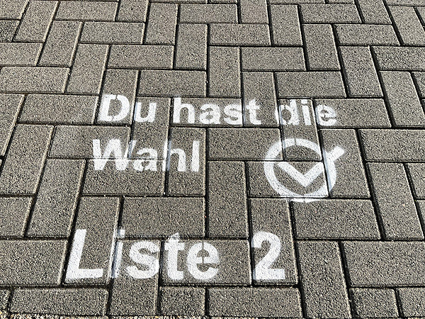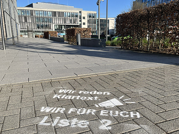 Eure Liste 2 hat in der Osterwoche den Fußweg vom Parkhaus in die Büro-Gebäude der FME tätowiert!